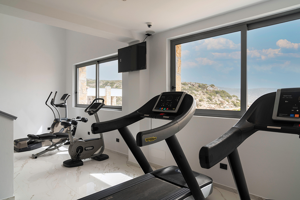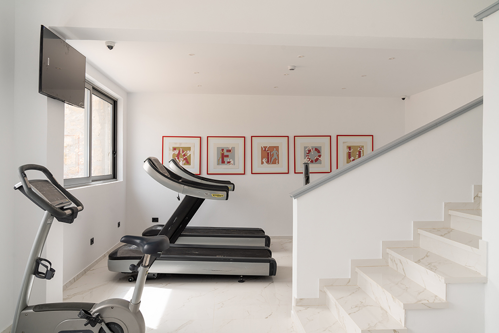 The mood-changing boost of a high energy work out captures the elated feeling of well-being. The private gym is perfect for enjoying personal work-out programs.