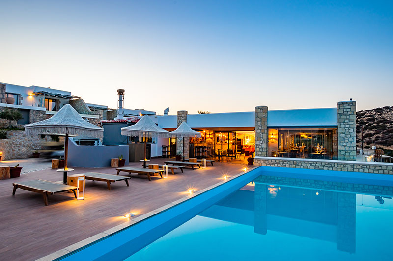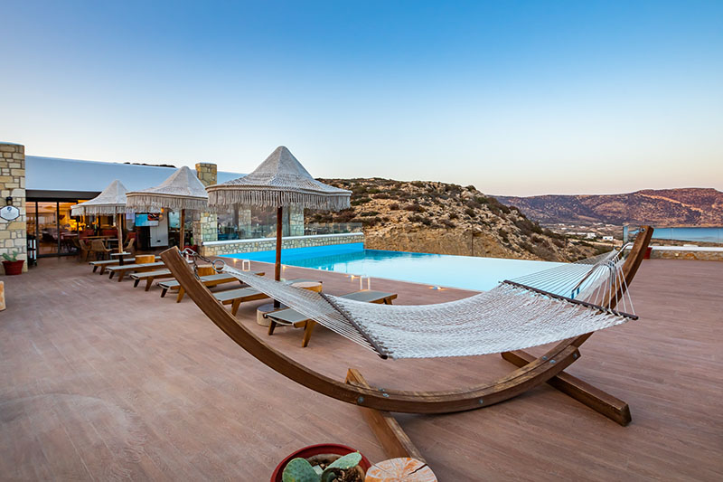 Remaining faithful to the concept of WELLNESS in its full meaning, relax and recharge in our outdoor pool, designed to promote the mental and physical well-being of our guests, in perfect harmony with the environment and overlooking the Bay of Amoopi